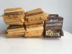 Inhalt: 20 dm³ Buchenholz, 1 Bund Anzündholz, 3 Holzwolleanzünder